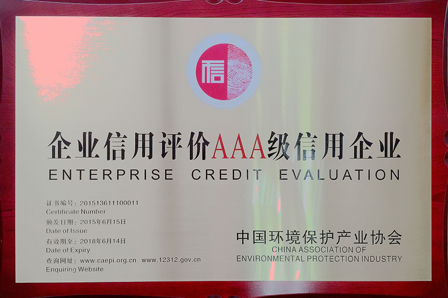 日前,由中国环境保护产业协会根据《中国环境保护产业行业企业信用等级评价管理办法》,经中国环境保护产业协会信用评价办公室和信用评价专家委员会严格评价,并通过协会信用评价工作委员会审核,从企业综合素质、财务状况、管理水平、竞争力和社会信用等五个方面对企业的信用状况进行综合评定,公司获评第五批企业信用等级AAA级企业(该评级依据评定结果确定企业的信用等级,分A、B、C三等,AAA、AA、A、BBB、BB、B、CCC、CC、C九级)。