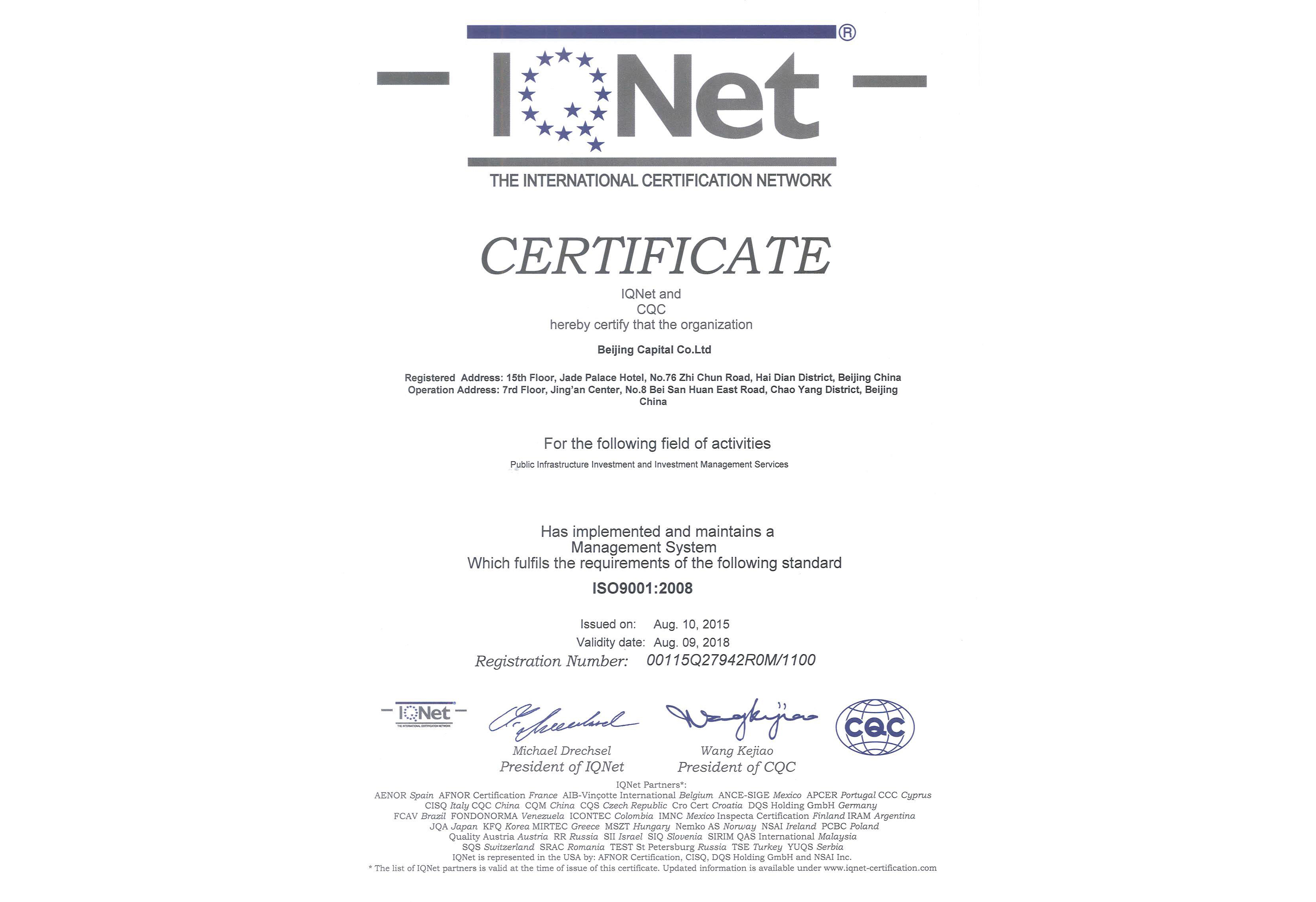 2015年8月18日,公司通过了中国质量认证中心的严格审核,获得了质量管理体系(ISO9001:2008)、环境管理体系(ISO14001:2004)以及职业健康安全管理体系(OHSAS18001:2011)证书,并获得由33个国家和地区组成的国际认证联盟IQNet认可的三体系证书。