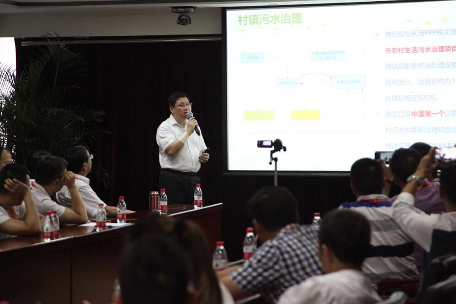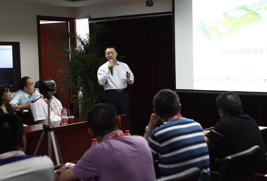 首创股份副总经理江瀚首先代表公司致欢迎词。江总首先对来访的学员热烈欢迎,江总强调:在环保产业的路上,首创股份15年来一直在努力,在坚持。主业不断聚焦关注在环境领域,当期在十三五规划制定中,公司在水务环境的关注提升到新的高度。更强调软性能力的建设,公司做了深刻的思考和明确的部署,希望能通过企业的发展带动环保产业品质的提升。在新型环境综合治理需求下,首创股份还充当着平台公司的角色。对很多业务的开展,还需要多方资源的配合。公司在十三五的规划中,三大发展思想为“竞争性发展,内生性发展,共赢性发展”。首创股份也怀着开放的心态,开放的模式未来与各单位进行多角度多方面的交流合作,资源共同有效的匹配,共同满足环境综合治理的需求。