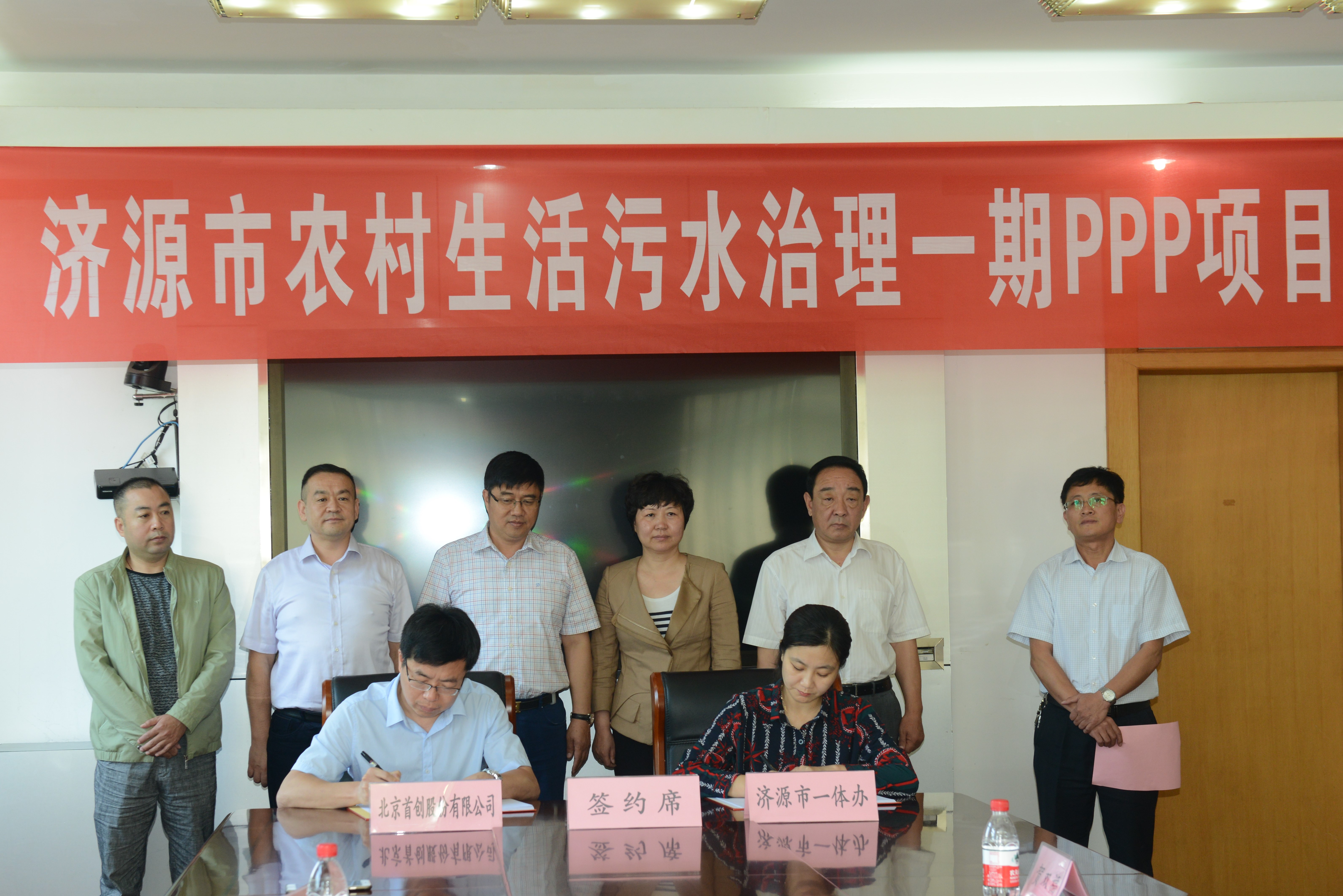9月6日上午,首创股份此前中标的济源市农村生活污水治理一期建设PPP项目在济源市正式签约。首创股份执行副总经理崔宝军、中原大区副总经理王振江,济源市副市长侯波,济源市副秘书长张北平、贺双福,以及市财政局、国土局、环保局、住建局、投资办等相关部门负责人出席签约仪式。