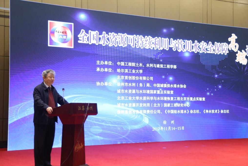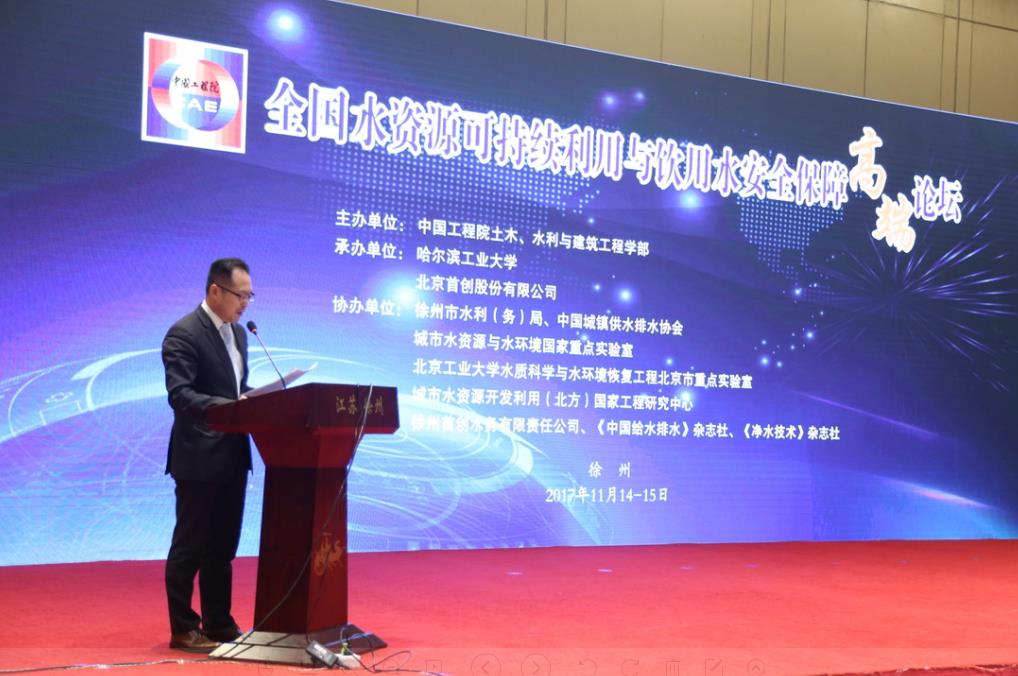 11月14至15日,由中国工程院土木、水利与建筑工程学部主办,哈尔滨工业大学、北京首创股份有限公司(以下简称“首创股份”)、徐州市人民政府承办的“全国水资源可持续利用与饮用水安全保障高端论坛”在江苏徐州隆重举行。论坛吸引了来自全国各地的300多位专家学者和业内人士参加,多位水资源方面的重量级专家参会做相关报告,徐州市副市长毕于瑞、首创股份副总经理江瀚出席论坛并致辞。