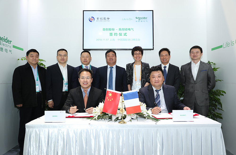 首创集团作为北京交易团国有企业代表参会,并在此次展会上有所斩获,其旗下环保旗舰企业,全球第五大水务运营商首创股份与全球能效管理与自动化领域数字化转型的领导者施耐德电气正式签署战略合作协议。双方将基于水厂能源综合解决方案和智慧水务建设,在电气及自动化设备的运维及管理,数字化改造及咨询服务等方面深入合作,为首创股份核心竞争力提供有力支撑,实现水务卓越运营。北京首创股份有限公司副总经理江瀚与施耐德电气全国销售部水行业总监杨虎进代表双方签约,北京首都创业集团总经理李松平,施耐德中国区高级副总裁张炜出席见签。