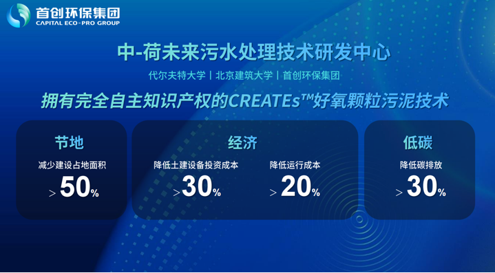 Mark院士提出的蓝色水工厂畅想在首创环保集团得到了实践。2016年,首创环保集团和Mark院士、北京建筑大学联合成立了中—荷未来污水处理中心,共同研究新一代污水处理技术。仅利用三年时间,首创环保集团就攻克了“好氧颗粒污泥”这个技术难题,并拥有完全的自主知识产权产品CREATEs。此外,中-荷中心实验室还在持续探索资源回用等问题。通过关键技术的突破、智慧控制平台的应用、工艺流程的改进,首创环保集团实践的污水处理厂不仅是污染物处理的终结场所,更是资源能源循环的起点。