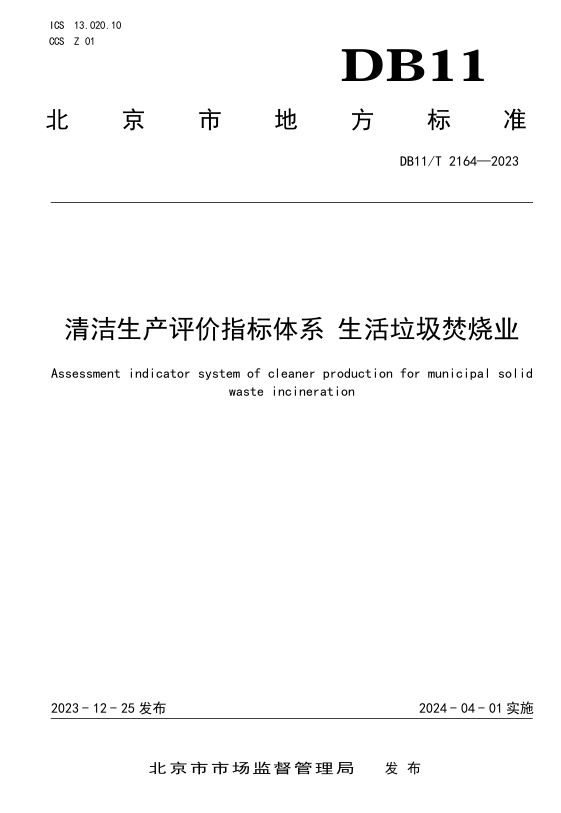 2023年底,首创环保集团编制的北京市地方标准《清洁生产评价指标体系 生活垃圾焚烧业》(DB11/T2164-2023)正式发布,这是全国首个针对生活垃圾焚烧业制定的清洁生产评价指标体系,引导企业采用先进的生产工艺及装备,降低能源、水资源及原辅材料的消耗,提高资源能源利用效率。