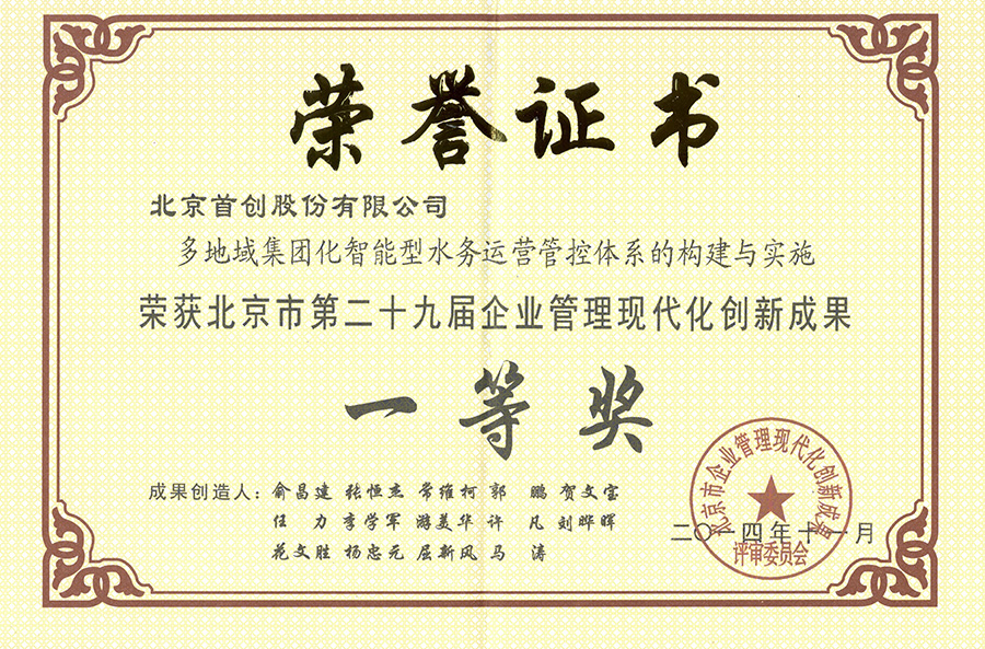 2014年11月,第二十九届北京市企业管理现代化创新成果评审结果揭晓,公司多项管理创新成果凭借突出的成果质量和管理成效,得到专家评委的一致好评,分别获得一、二等奖的好成绩。